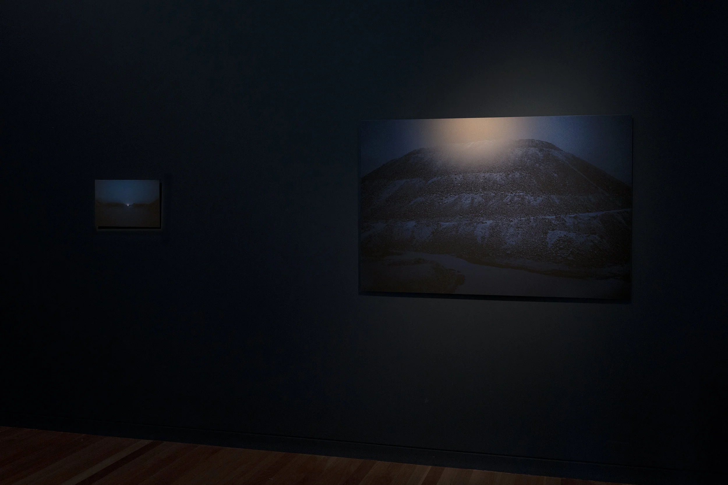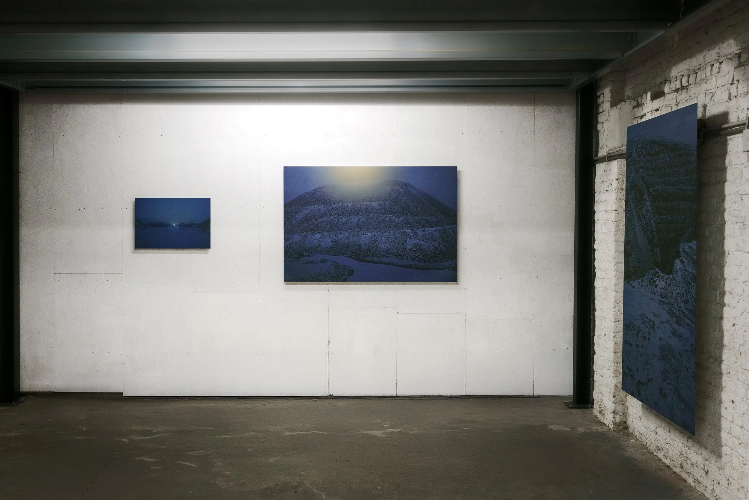 Imbued with the soft hues and dark tones of the waning light at the onset of the polar winter, the works from the series focus on sites exploited by extractive industries and portray an altered man-made landscape reminiscent of ancient piramids and mastaba’s.